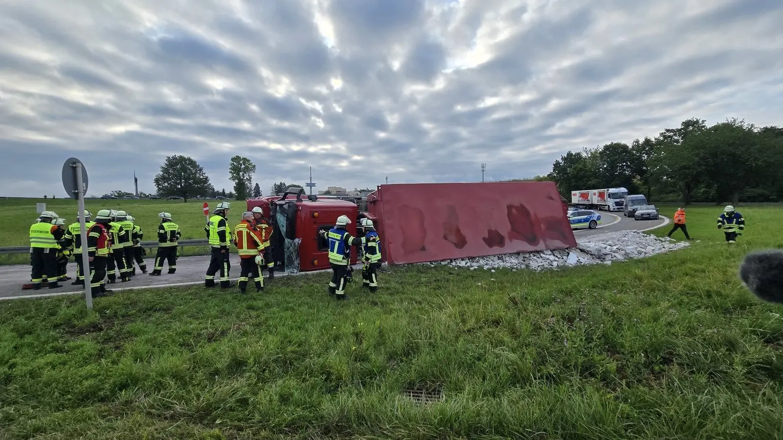 Laut Polizeibericht sei der 35-jährige Fahrer eines Lastwagengespannes, das mit Steinen und Bauschutt beladen war, gegen 7 Uhr am Ende der Überleitung vermutlich aufgrund nicht angepasster Geschwindigkeit in Verbindung mit dem hohen Schwerpunkt der Ladung ins Schlingern geraten. Das Zugfahrzeug kippte schlussendlich um. Der nicht angeschnallte Fahrer wurde leicht verletzt ins Krankenhaus eingeliefert. Die hinter dem havarierten Lastwagen befindlichen Fahrzeuge wurde rückwärts auf die A3 zurückgelotst. Die Überleitung musste bis 13 Uhr zur Bergung des Lastwagens und der verlorenen Ladung komplett gesperrt werden. An der Unfallstelle waren die Autobahnmeistereien Pentling und Pollenried sowie die Berufsfeuerwehr und die Feuerwehr Pentling zur Absicherung und Beseitigung der auslaufenden Betriebsstoffe. Der Sachschaden beläuft sich auf etwa 50.000 Euro.