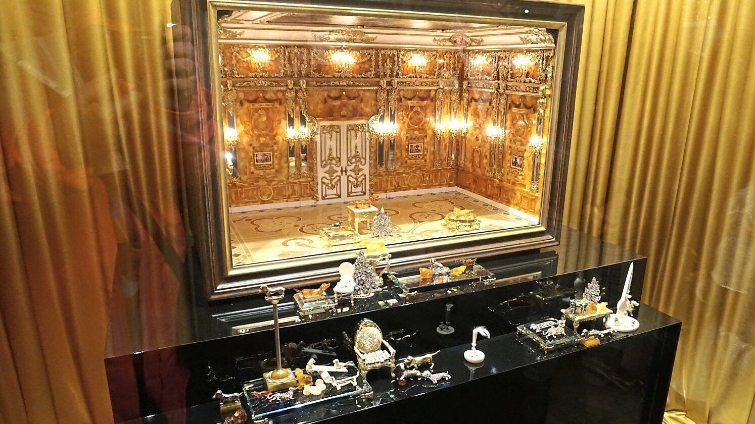 Um das echte Bernsteinzimmer ranken bis heute sich Legenden, es ist seit 1945 verschollen. Uwe Habermann baute diesen Prunkraum in zehnjähriger Arbeit detailgetreu im Miniaturformat nach.