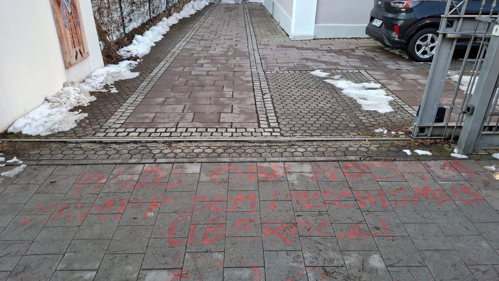 In der Nacht auf Donnerstag ist es in Regensburg zu einem Fall von Vandalismus mit Farbe gekommen. Die Polizei geht von einem politischen Motiv aus und bittet um Hinweise.