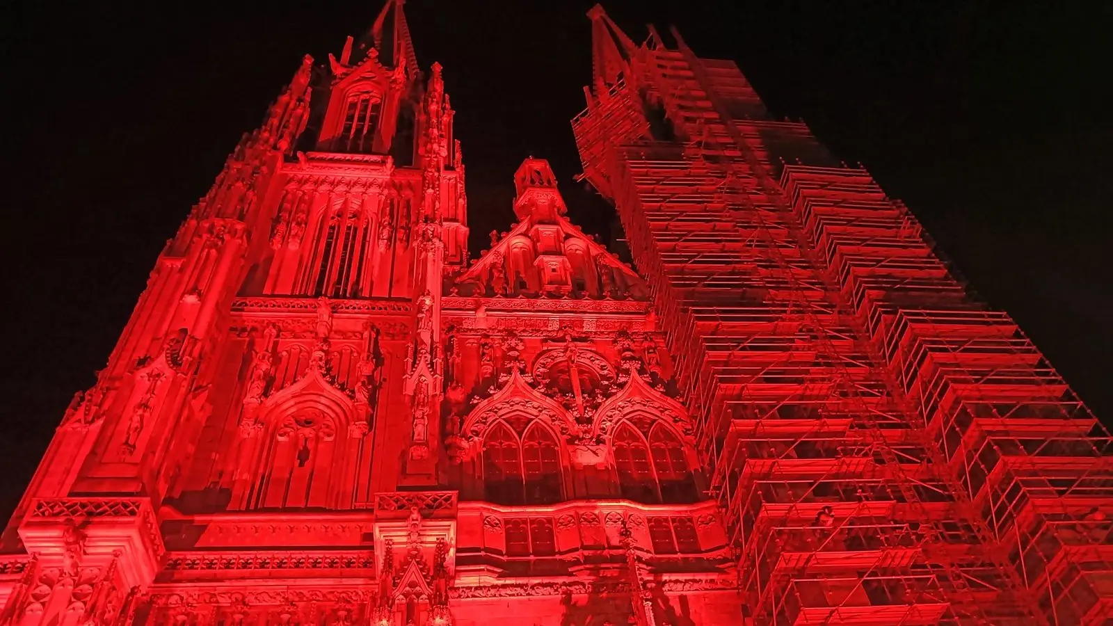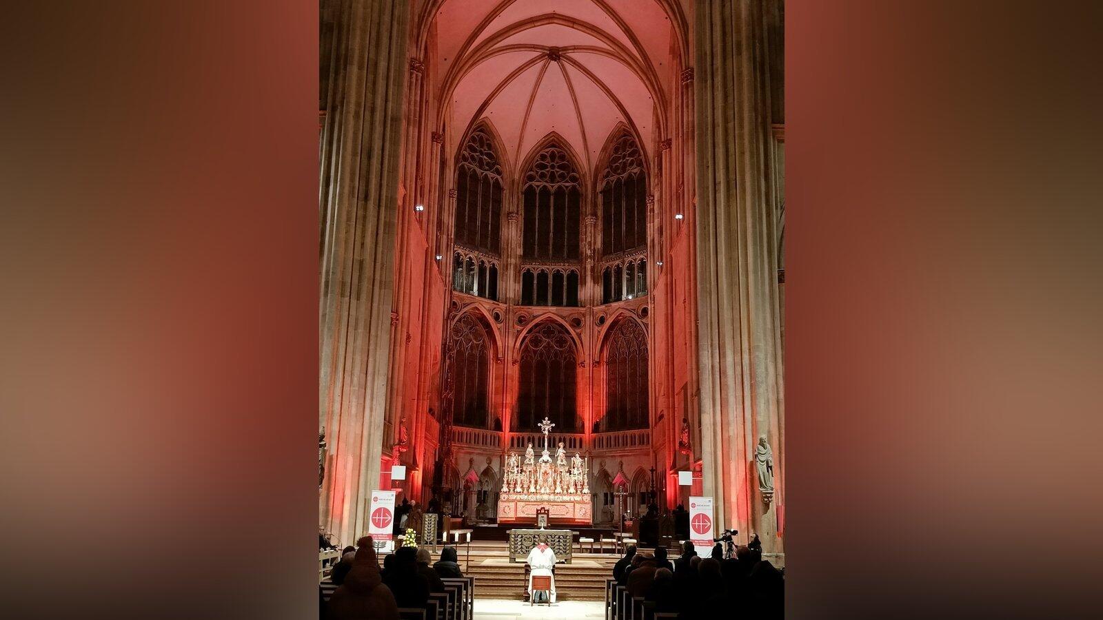 Roter Regensburger Dom weist auf Schicksal verfolgter Christen hin