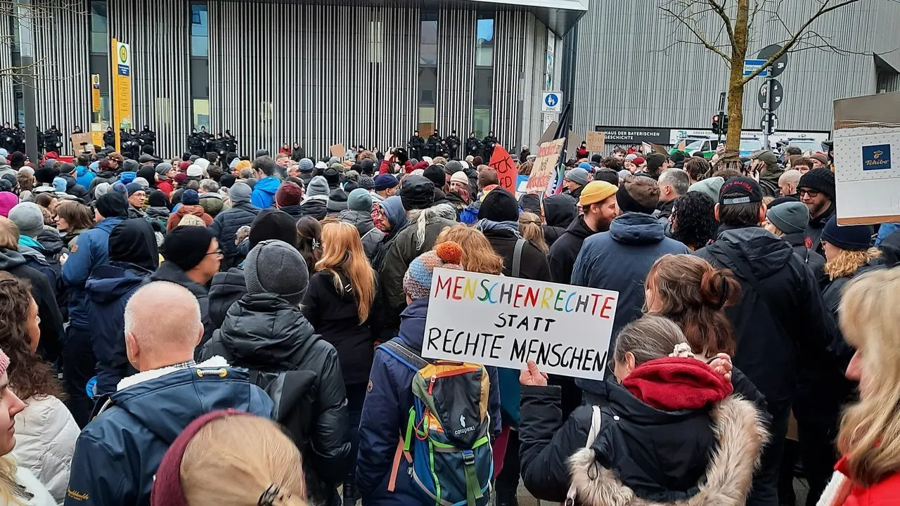 Der Veranstalter von "Kinder stehen auf", Marcel Dold, versuche "ganz dreist, sich an die Proteste gegen die Bundesregierung anzuhängen", sagte Beate Büttner von der Arbeitsgemeinschaft sozialdemokratischer Juristinnen und Juristen. Zuerst seien es die Landwirte gewesen, jetzt der Mittelstand, der bekanntermaßen "immer etwas zu meckern habe gegen die gerade aktuelle Regierung". Darunter seien auch Leute, die ein gewisses rechtspopulistisches Repertoire gut beherrschen". Das Hauptanliegen der "trommelnden Schwurbler und Verschwörungsgläubigen" sei, sich gegen die Bundesregierung zu richten. Die Themen seien austauschbar. Den Veranstalter als AfD-nah zu bezeichnen, sei fast schon verharmlosend. Auch sie selbst sei mit politischen Entscheidungen nicht einverstanden, sagte Büttner, wie zum Beispiel die Erleichterung von Abschiebungen, die kürzlich per Gesetz beschlossen wurde. Aber es dürfe nicht diffamiert werden, nicht die Demokratie und die Verfassung infrage gestellt. Menschen wie die auf dem Donaumarkt hätten den demokratischen Diskurs verlassen. Sie stünden für etwas, "das wir in diesem Land nicht mehr haben wollen".