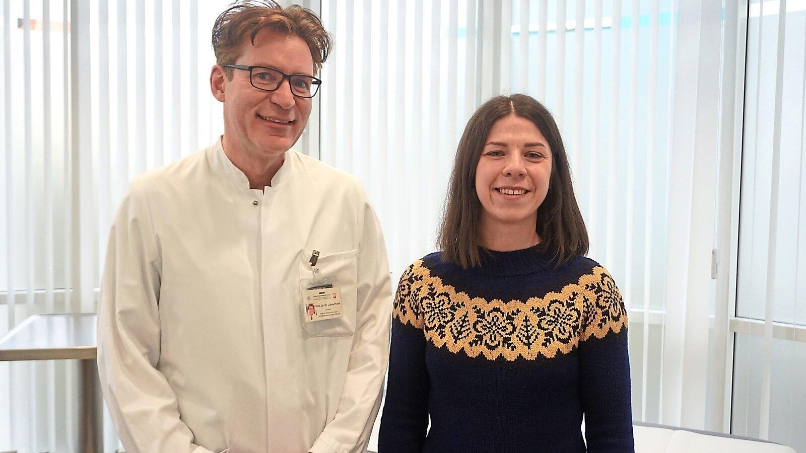 Zwei Jahre nach der Operation kam Verena Dinhof (rechts) zur Nachuntersuchung zu Professor Lukas Prantl.