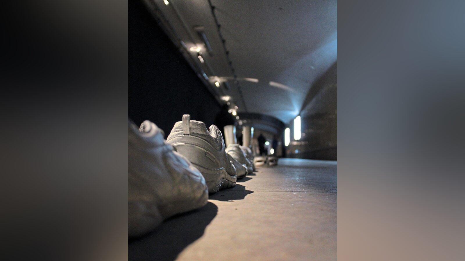 Schuhe am Regensburger Bahnhof erinnern an Deportation