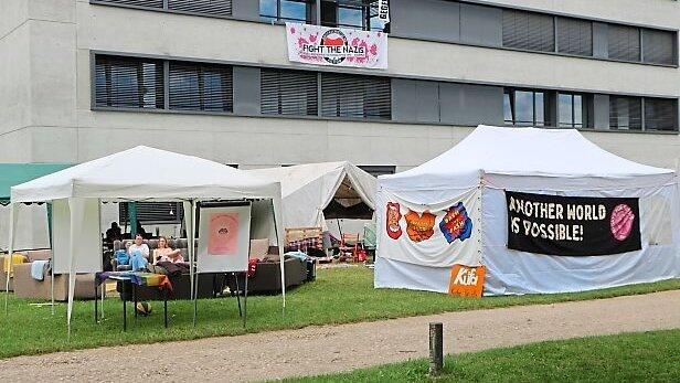 Auf dem Gelände der Universität Regensburg findet weiterhin ein von Studierenden initiiertes "Camp gegen Rechts" statt.