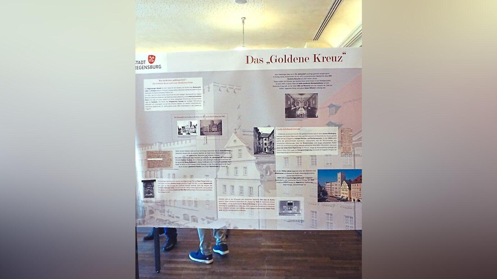 Blick in die Ausstellung: Hier kann man, übersichtlich gestaltet, die Informationen zum Goldenen Kreuz einsehen.