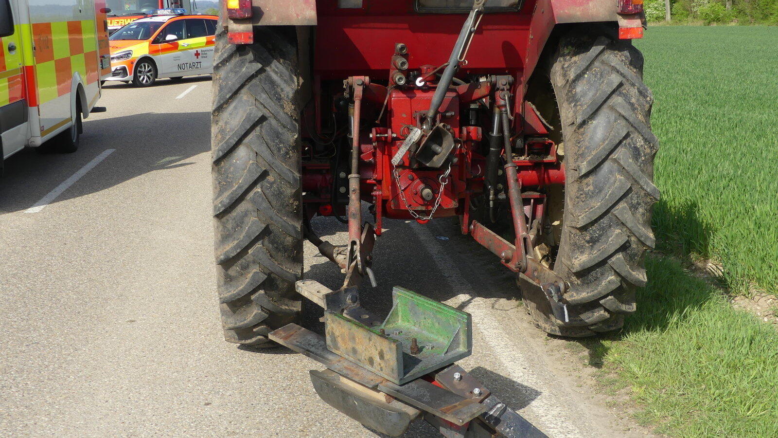 Zu einem schweren Motorradunfall auf der Gemeindeverbindungsstraße zwischen Sengkofen und Geisling ist es in den Nachmittagsstunden des Donnerstags gekommen. Nach Informationen der Polizei war dort ein 84-jähriger Mann mit seinem Traktor der Marke McCormick unterwegs von Sengkofen in Richtung Geisling. Bei Geisling wollte er nach links in einen Feldweg abbiegen. Zeitgleich war ein 73-Jähriger mit seinem BMW-Motorrad in gleicher Richtung unterwegs. Der Traktorfahrer war dabei, abzubiegen, als das Motorrad von hinten auffuhr. Ob der Fahrer den Traktor übersehen hat oder überholen wollte, ist nicht geklärt. Durch die Wucht des Aufpralls wurde die sogenannte Ackerschiene des Traktors einseitig abgerissen sowie das Vorderrad des Motorrads. Dieses schlitterte noch viele Meter auf der Straße und anschließend links in einem Feld dahin und blieb mit dem Fahrer nach etwa 150 Metern liegen. Der Fahrer wurde schwer verletzt, ein Rettungswagen brachte ihn in ein Krankenhaus. Ob Lebensgefahr besteht, konnte man vor Ort noch nicht sagen. Der Traktorfahrer blieb trotz eines großen Schrecks unverletzt. Rund 25 Einsatzkräfte der Feuerwehren aus Geisling und Sengkofen mit Einsatzleiter Thomas Leyerer wurden gerufen. Sie kümmerten sich bis zum Eintreffen des Rettungsdienstes um den Motorradfahrer, sammelten die Plastikteile des Motorrads auf und leiteten den Verkehr auf der für über eine Stunde gesperrten Straße um.