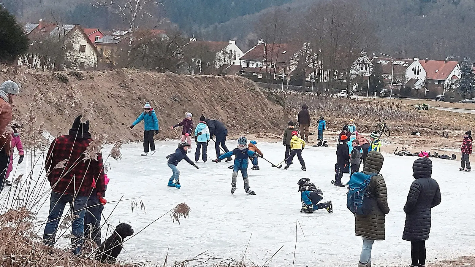 Durch den anhaltenden Regen in der vergangenen Zeit konnte sich in Donaustauf auf einem tiefer gelegenen, ausgebaggerten Grundstück in der Bayerwaldstraße nahe des vorgesehenen Seniorendomizils eine 20 mal 30 Meter große Wasserfläche bilden, die aufgrund des anhaltenden Frostes zugefroren ist. Das sprach sich schnell herum und es tummelten sich am Samstag und Sonntag viele Kinder mit ihren Eltern darauf. Die Sicherheit war gewährleistet, da ein Einbrechen nicht zu befürchten ist.