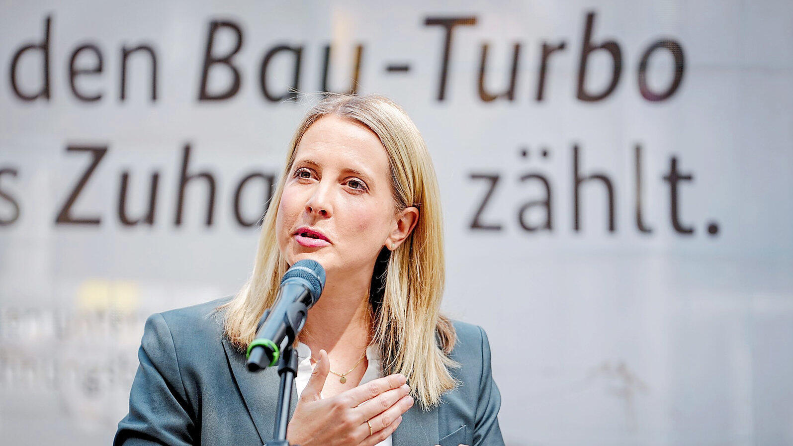 Verena Hubertz (SPD), Bundesministerin für Wohnen, Stadtentwicklung und Bauwesen, bei einer Pressekonferenz in Berlin zum neu eingeführten Bau-Turbo.