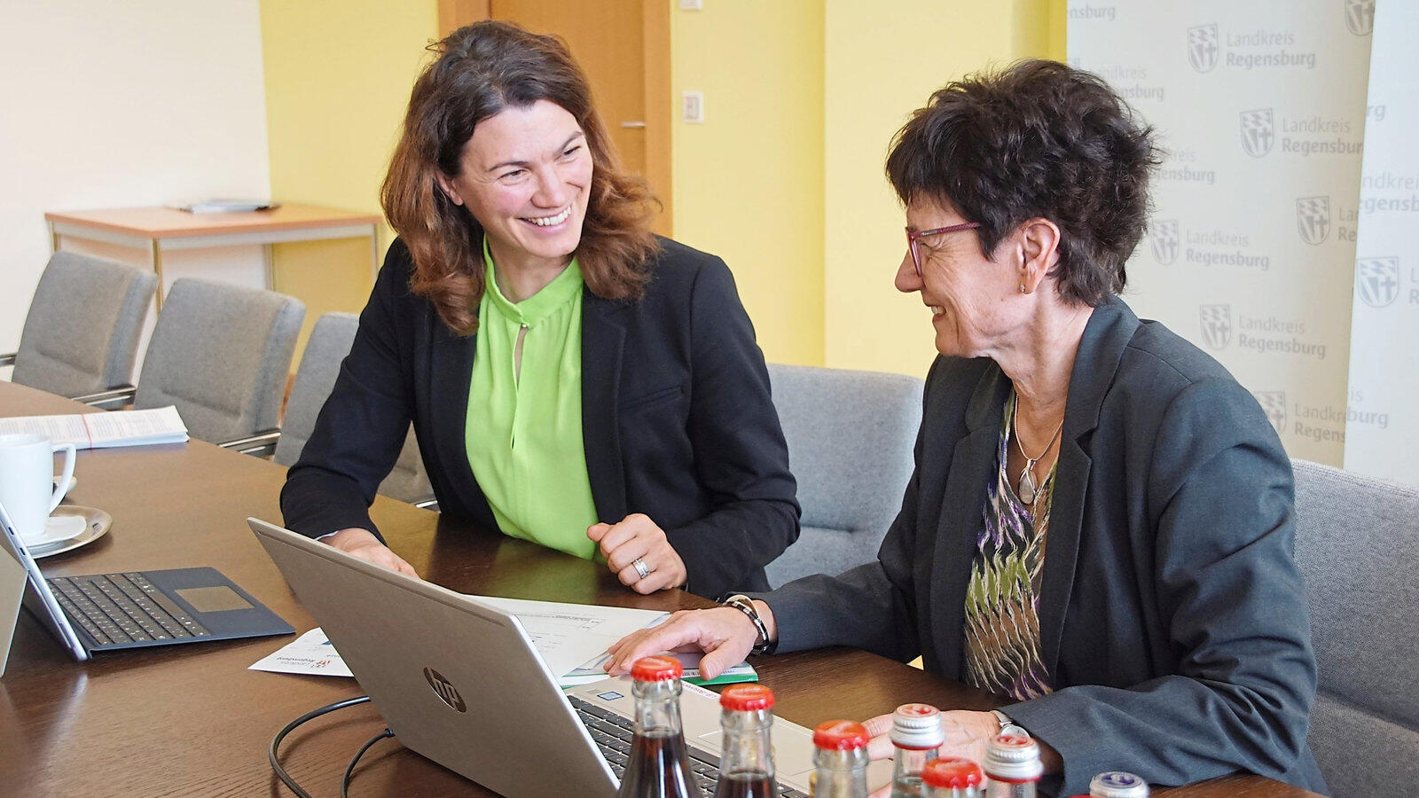 Landrätin Tanja Schweiger und Kreiskämmerin Petra Grimm bei der Haushaltsvorbereitung. Die Kreisumlage sinkt deutlicher als erwartet.