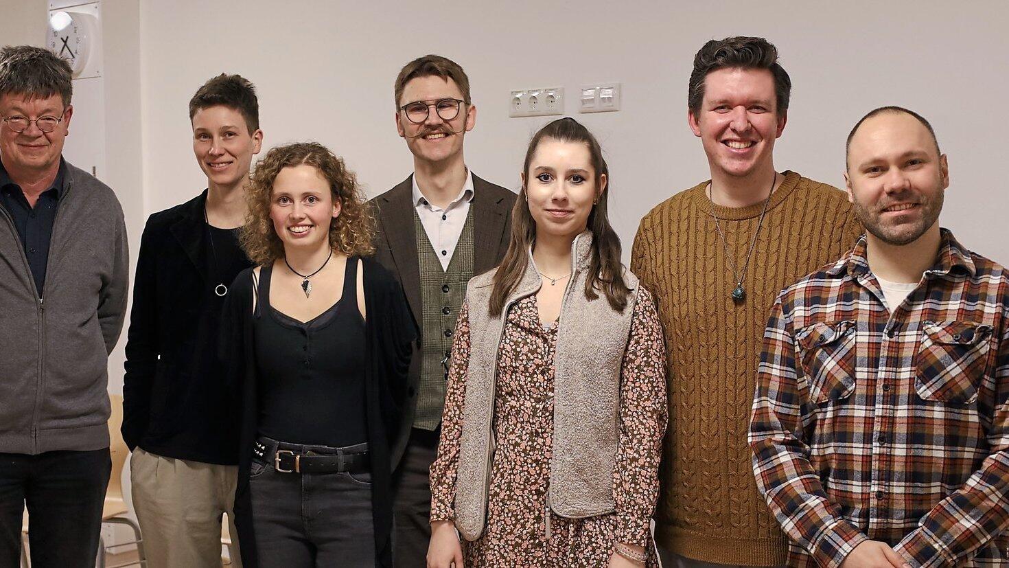 Schriftsteller Rolf Stemmle (links) leitet seit vier Jahren die Gruppe Young Writers Regensburg. Zu sehen sind die sechs Autoren.