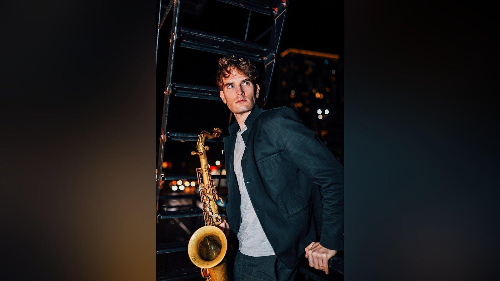 Tobias Meinhart im New Yorker Nachtlicht mit seinem Saxophon. Am Wochenende wird der bekannte Jazzmusiker bei vier Auftritten am Bayerischen Jazzweekend in Regensburg zu sehen und zu hören sein.
