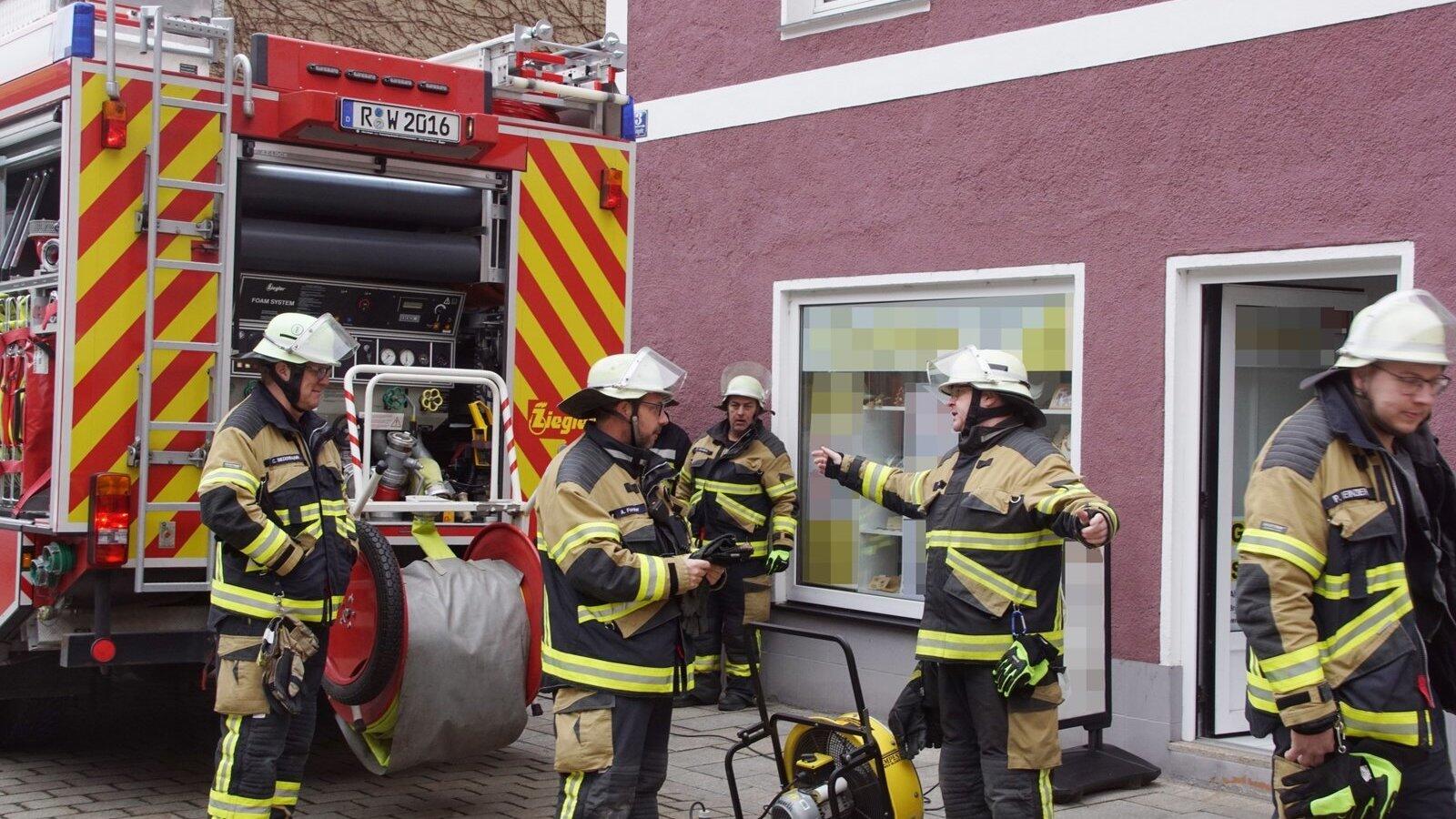 Die Feuerwehrleute brachten einen Drucklüfter in Stellung, der den Qualm aus dem Geschäft hinaustrieb.