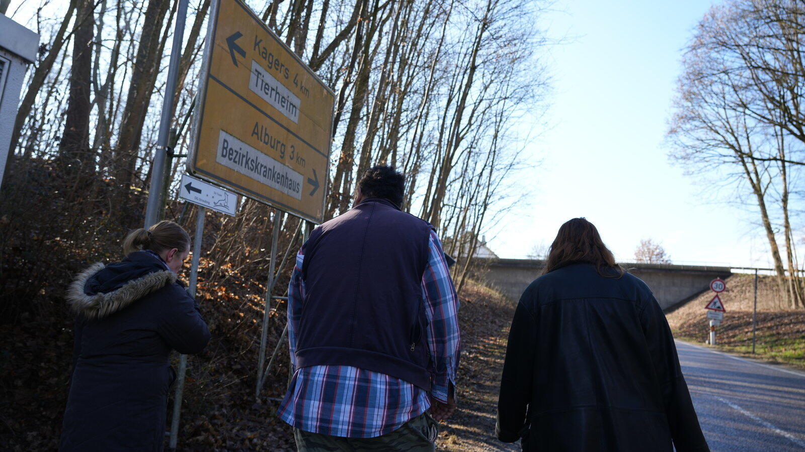 Auf dem Weg zur Pforte sperren F.s Pflegerinnen ihre Notfalltelefone in Spinds, schließen die letzte Tür auf, für die ihr Schlüssel gültig ist. Die allerletzten vier Türen vor dem Ausgang kann man nicht von innen öffnen - Sicherheitsmitarbeiter müssen sie von der Pforte aus per Knopfdruck freischalten. Auf dem Vorplatz blinzelt F. in die Sonne - mehr als zehn Mal durfte er schon raus. Die Drei kommen nicht weit, F. muss sich erst mal eine drehen. Andere Städte sind längst um ihr BKH herumgewachsen, Straubing hält zu seinem immer noch Abstand. Nicht mal einen befestigten Weg gibt es zum Stadtpark, die Drei müssen im Matsch entlang der Schnellstraße gehen. Unter der B8-Brücke sagt F., er verstehe die Leute nicht, die die Resozialisierung nicht nutzen. Man will doch wieder raus ins Leben, oder nicht? Die Bäume, die Vögel, der Tierpark - das gibt ihm Lebensfreude zurück.