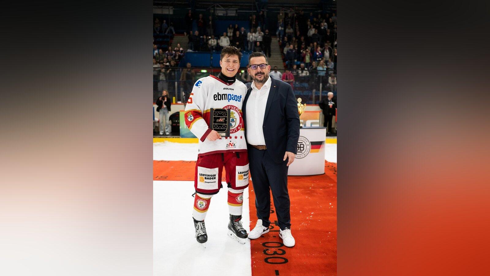 Für seine Leistung in den DNL-Finals wurde Tobias Schwarz von Panagiotis Christakakis (Kaufmännischer Leiter DEB-Ligen) als wertvollster Spieler ausgezeichnet.