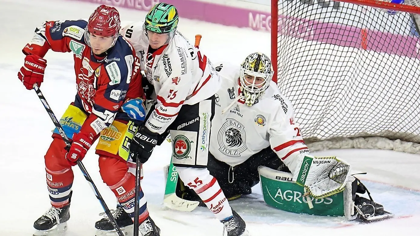Wie gegen Bad Tölz hatten es die Deggendorfer - hier Jaroslav Hafenrichter (in rot) - auch in Lindau nicht einfach vor dem gegnerischen Tor, doch erzielten sie sechs Treffer.