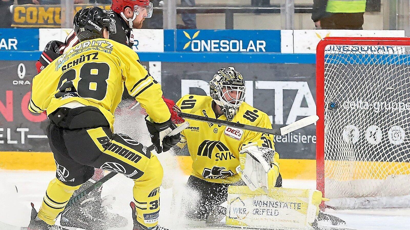 Hart erkämpfter Sieg in einem packenden Spitzenspiel der DEL 2: Der EV Landshut setzte sich am Freitagabend vor 4.194 Zuschauern in der VR-Bank-Landshut-Arena gegen die Krefeld Pinguine mit 4:1 (1:0, 0:0, 3:1) durch.