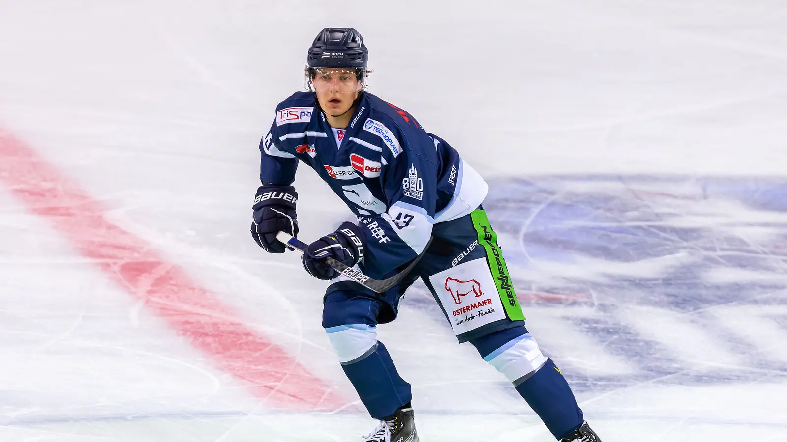 Die Augen immer auf den Puck gerichtet und die Mitspieler im Blick zu haben gilt es auf dem Eis. Der läuferisch starke Verteidiger macht sein Spiel über einen schnellen Aufbaupass. Er bindet sich gerne in den Angriff mit ein, vergisst dabei aber seine Rolle in der Defensive nicht. Ein Mitspieler passt ihm den Puck vor dem gegnerischen Tor zu, Zimmermann nimmt ihn an, Schuss - Tor! Er reißt die Hände in die Luft und jubelt.