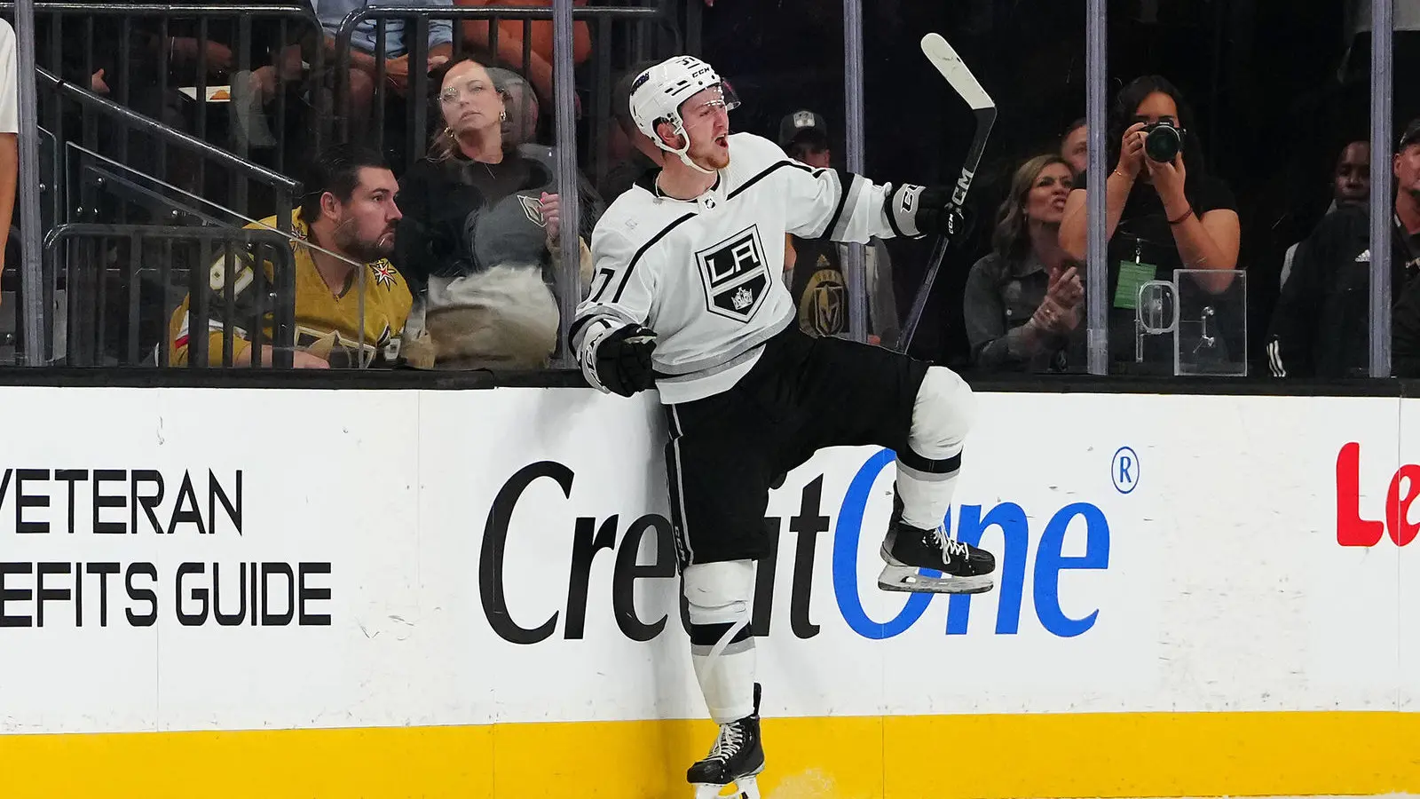 Will in der kommenden Saison für die Straubing Tigers jubeln: Neuzugang Tyler Madden, hier nach einem Tor in einem Pre-Season-Spiel für die Los Angeles Kings im September 2023.