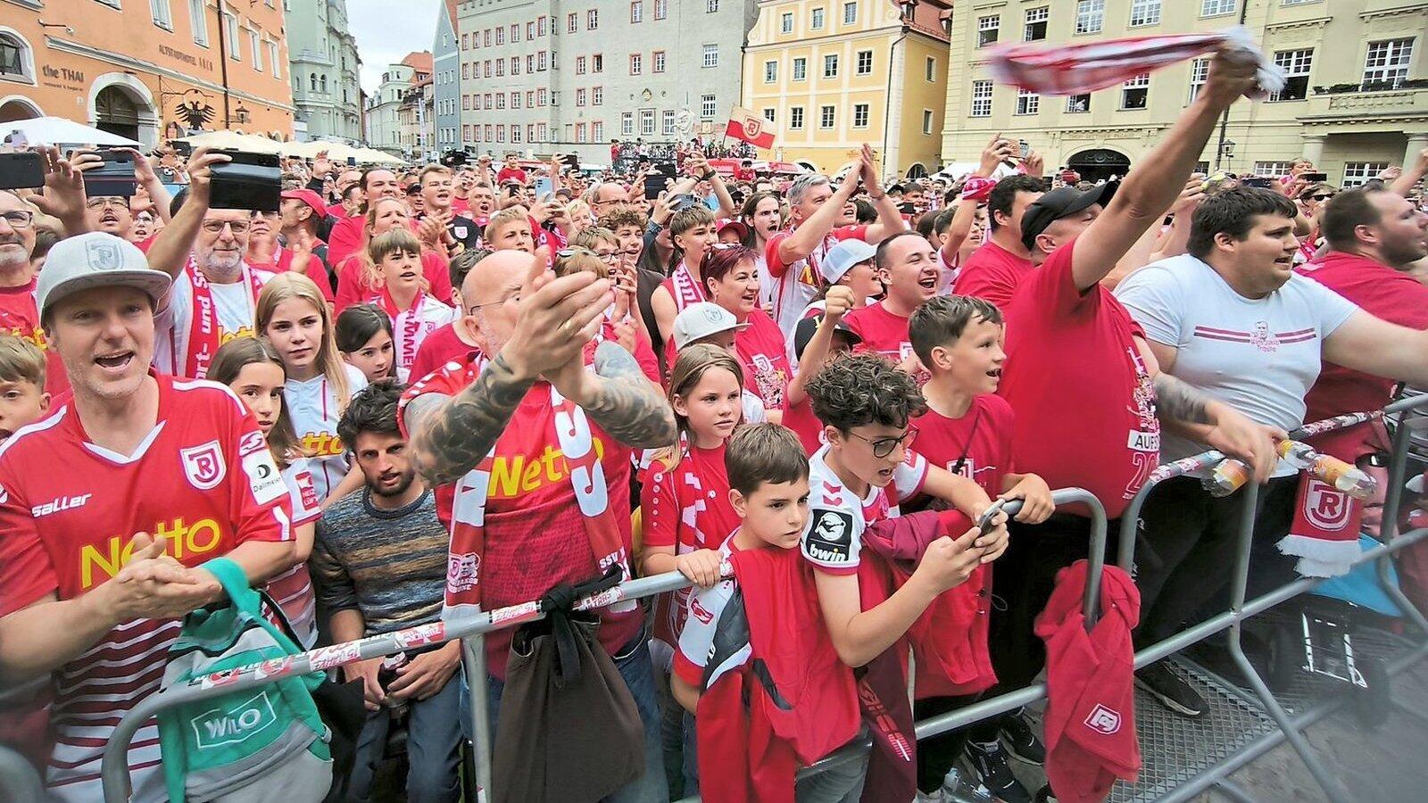 Bei der Aufstiegsfeier am Haidplatz feierten die Anhänger frenetisch die Rückkehr ihrer Mannschaft in die zweite Bundesliga.