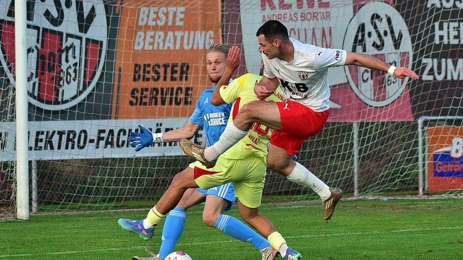 Cham mit Chrubasik Lucas (in Weiß) muss ATSV-Torwart Salomo Schilke wenigstens einmal überwinden und darf kein Tor kassieren.