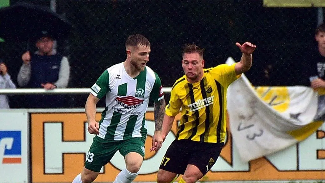 Jonas Goß (links) wechselt im Sommer vom Liga-Konkurrenten SV Schalding-Heining zur DJK Vilzing (rechts Fabian Trettenbach).