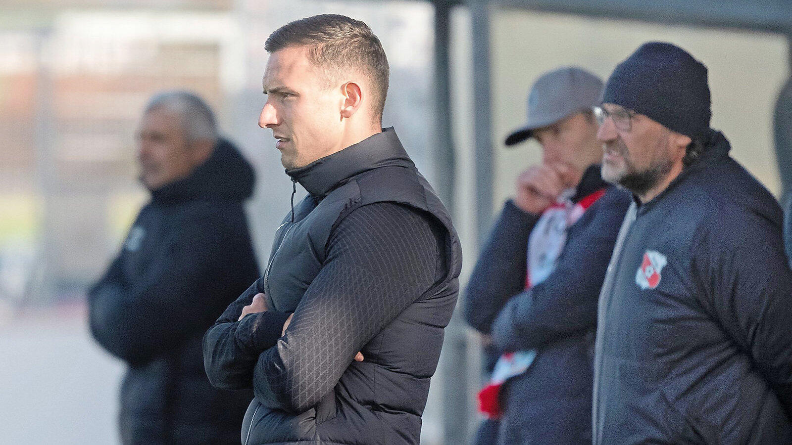 Eine gewisse Skepsis in den Gesichtern der Verantwortlichen auf der Hankofener Bank - nicht zuletzt bei Trainer Tobias Beck (vorn) - ist nicht erst seit der Heimniederlage gegen Aubstadt unübersehbar. Noch überwiegt aber der Optimismus.