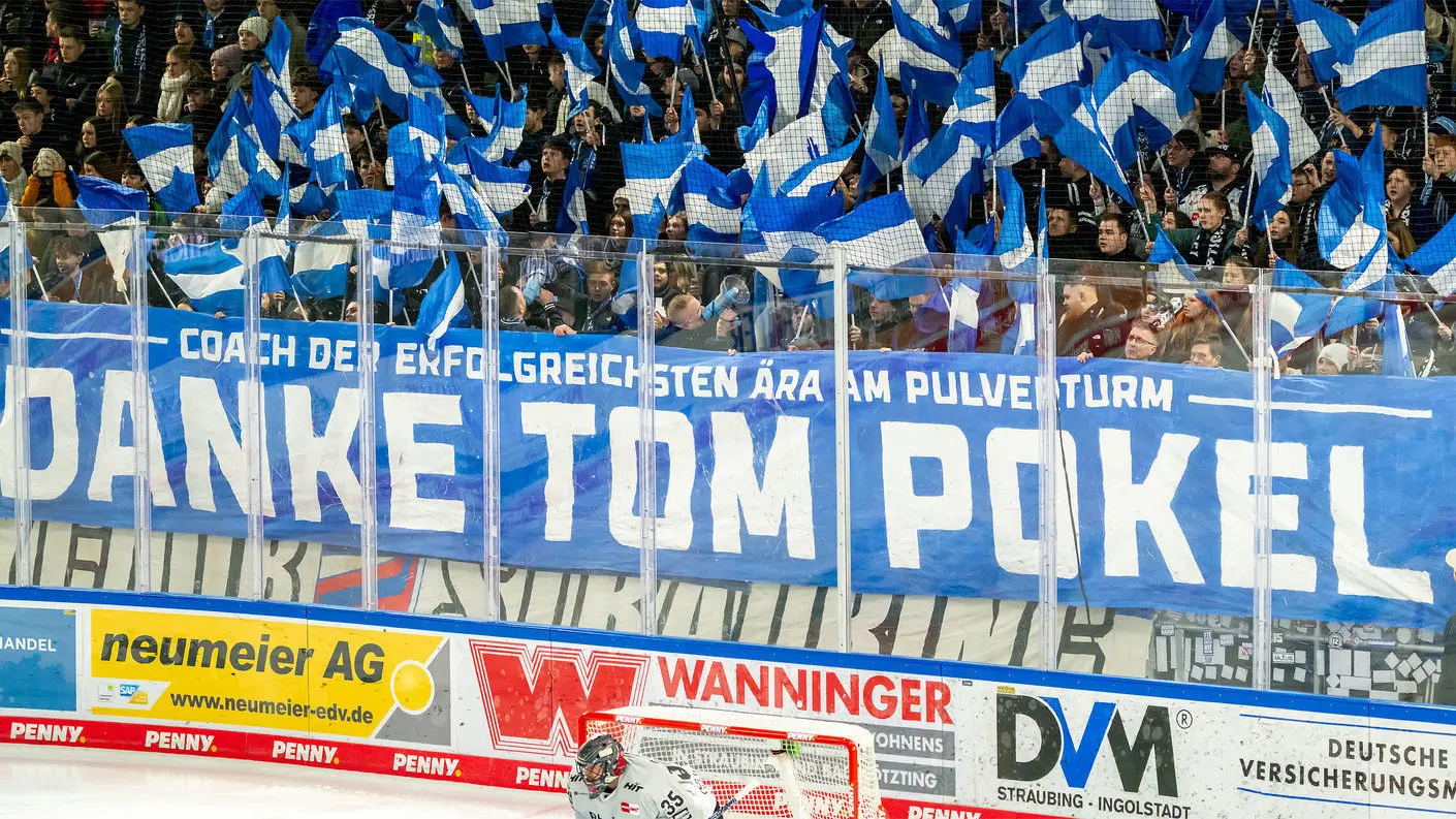 Am Freitagabend beim Spiel gegen die Kölner Haie hatten die Straubinger Fans mit einem Banner vom "Coach der erfolgreichsten Ära" am Pulverturm Abschied genommen: "Danke, Tom Pokel."
