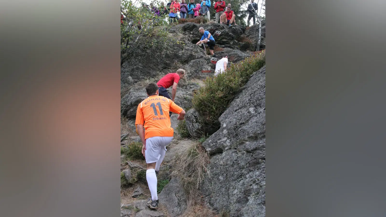 Nach Reitenstein dann der Knackpunkt der Strecke, hier war nach dem Passieren des früheren Berggasthofes ab Höhe des Plattensteines der steilste und schwierigste Teil zu absolvieren. Spannend auch für die Zuschauer die Felsenquerung bei der Räuber-Heigl Höhe oder die Felsentreppe kurz vor Erreichen des Sattels unterhalb des Gipfels. Noch durch die engen Felsentürme durch, kurz an der Seilsicherung entlang und dann waren für die Athleten das Ziel nahe dem Kreuz erreicht.