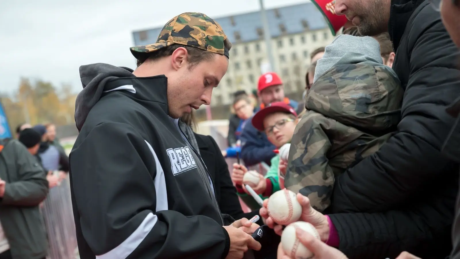 Baseball-Superstar Max Kepler (26) war am Samstag zu Gast in Regensburg. Im Baseballstadion schrieb er fleißig Autogramme und schaute bei einem Trainingscamp vorbei.