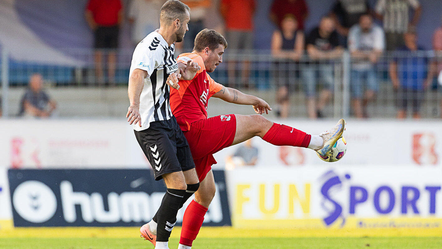 Hankofens Andreas Wagner (r., hier in der Partie gegen Burghausen Ende August) kehrt nach abgesessener Gelbsperre gegen Buchbach in die Mannschaft zurück.