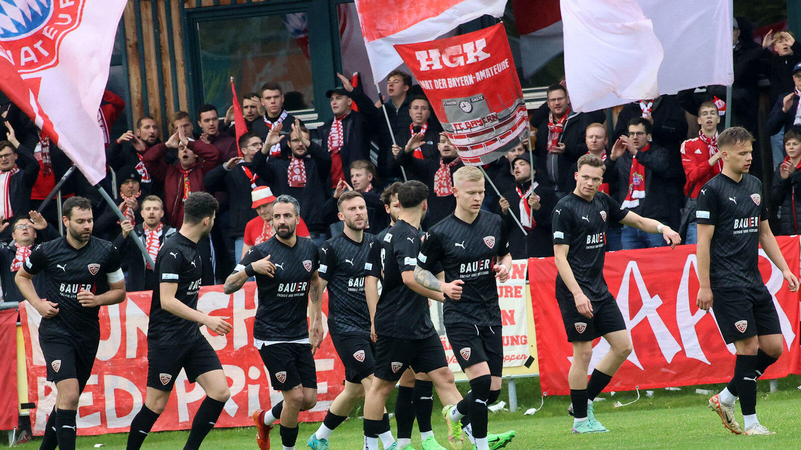 Die Freude währte nicht lange: Die Buchbacher bejubeln den Führungstreffer von Kevin Hingerl (3. von links).