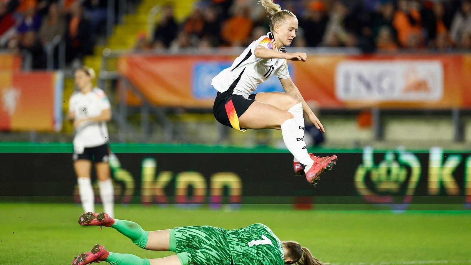 Neuling Knaak, erstmals nach über neun Jahren wieder im DFB-Kader, wirkte in der Anfangsphase etwas wackelig - was allerdings für die gesamte deutsche Abwehr um Kapitänin Giulia Gwinn und Stellvertreterin Janina Minge galt.