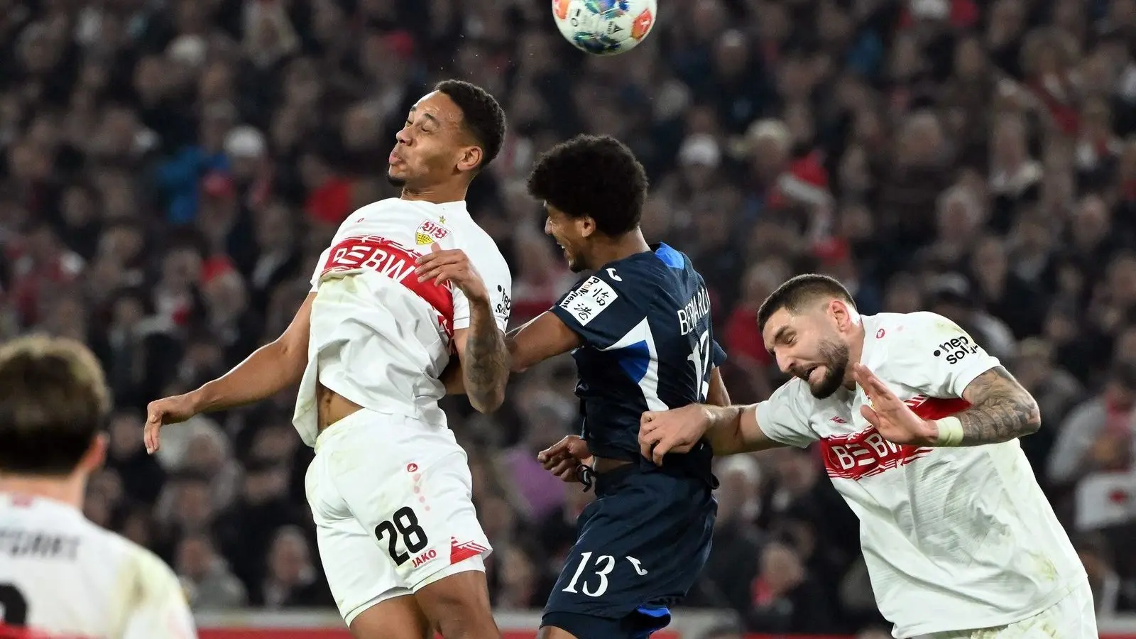 Erst wenige Minuten vor dem Pausenpfiff war Hoffenheims Baumann erstmals richtig gefordert. Eine Flanke von Jamie Leweling verlängerte Nikolas Nartey auf Tiago Tomás, doch Baumann parierte bei der besten Gelegenheit der ersten Hälfte gegen den herangrätschenden Stürmer glänzend.