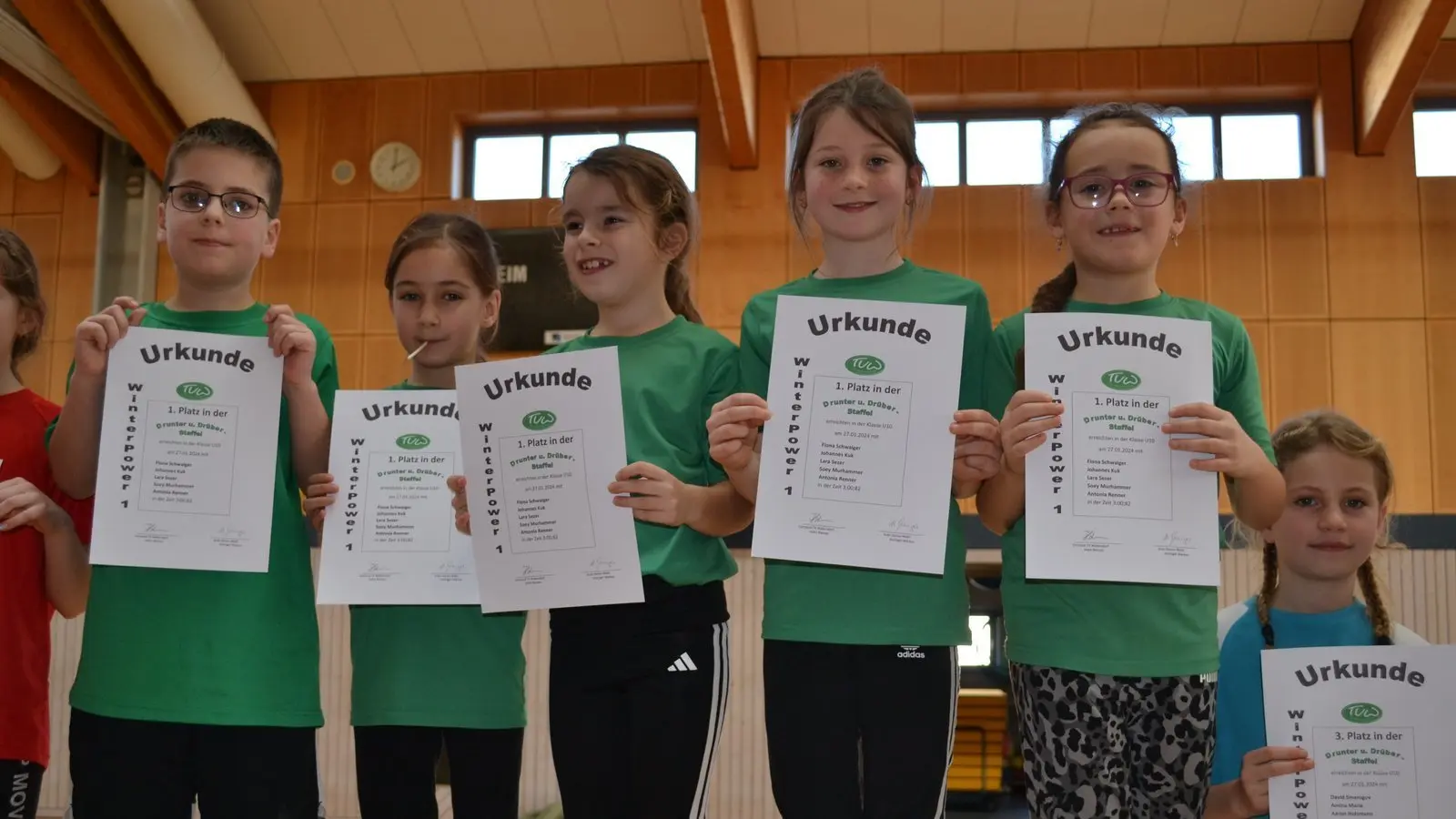 Bei den Staffeln siegte die U10 des TV Wallersdorf mit Johannes Kuk, Lara Sezer, Soey Murhammer, Antonia Renner und Fiona Schwaiger.
