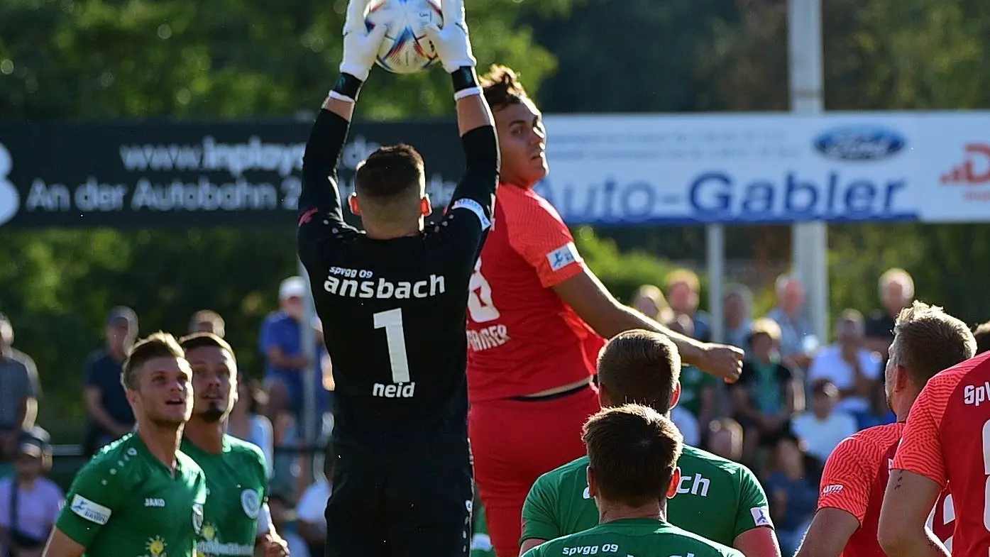 Auf der Gegenseite versuchten es auch die Ansbacher immer wieder. Alleine dreimal war es Kroiß, der einmal den Pfosten traf (59.) und der zweimal in Keeper Maier seinen Meister fand (57. und 72.). Der sonst so treffsichere Kroiß hatte dieses Mal nicht das richtige Zielwasser getrunken. In der Schlussphase wurde es noch turbulent. Hankofens Pex verletzte sich am linken Bein (85.), ob es wieder das Knie ist, wird sich zeigen, es kann auch eine Zerrung am Oberschenkel sein. Die Gäste hatten zu diesem Zeitpunkt schon fünfmal gewechselt. In der Nachspielzeit hatten die Ansbacher noch zwei gefährliche Eckbälle, die einmal von Timo Sokol und beim zweiten Mal von Tobias Lermer kurz vor der Linie jeweils mit dem Kopf geklärt werden konnten.