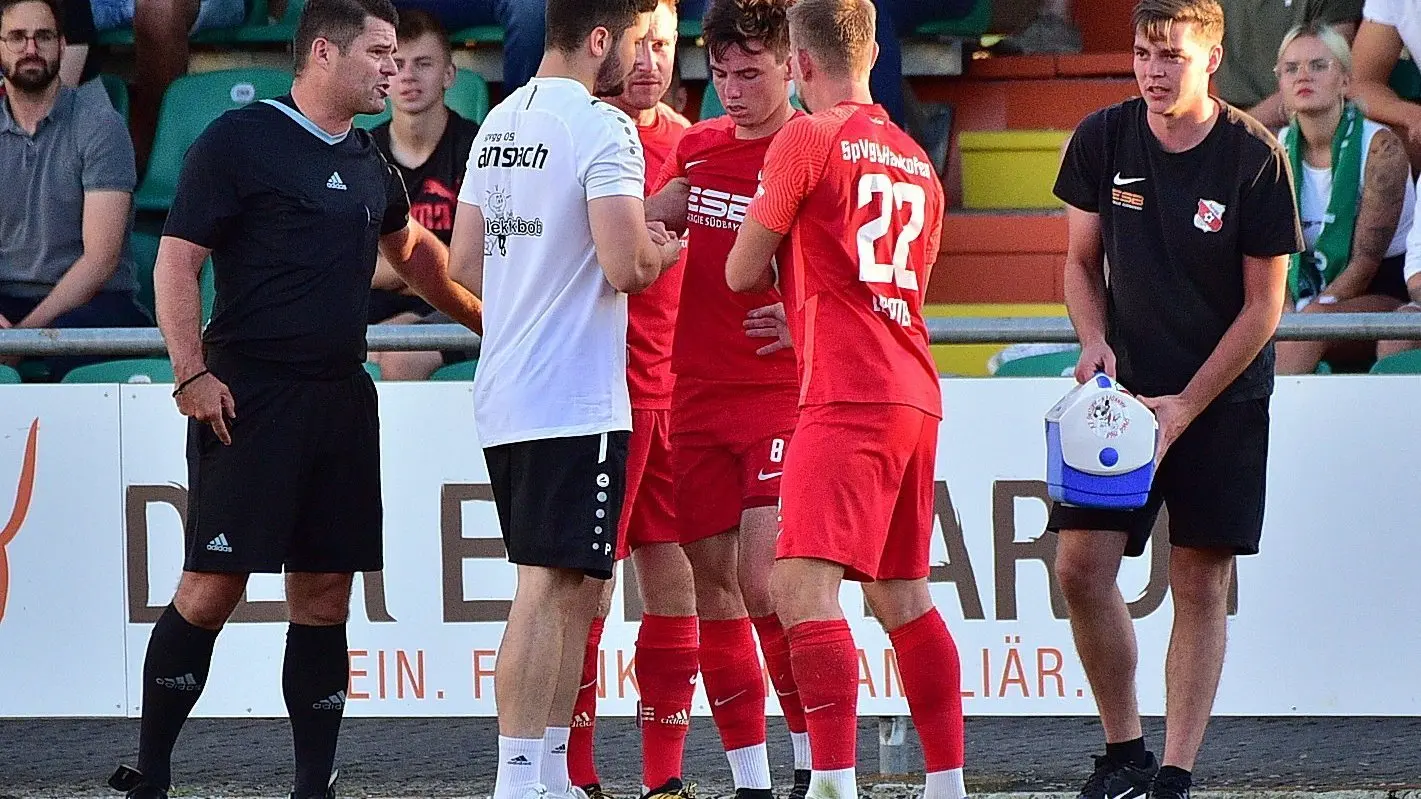 Es folgte eine Trinkunterbrechung und danach kam von Hankofen herzlich wenig. Ansbach hatte nun leichte Vorteile, konnte aber auch keine große Torgefahr ausstrahlen. Eine wichtige Szene gab es dann doch noch in Durchgang eins. Als Hankofens Innenverteidiger Benedikt Gänger den Ansbacher Michael Sperr am Fuß erwischte, kam der zu Fall und Schiedsrichter Markus Pflaum aus Dörfleins bei Bamberg, der am Spieltag seinen 46. Geburtstag feiern konnte, entschied auf Strafstoß. Patrick Kroiß, Spezialist für solche Aufgaben bei den Westmittelfranken, versenkten den Ball unter dem Jubel von fast 900 Zuschauern im Xaver-Bertsch-Sportpark zum 1:0 für die Gastgeber (42.).