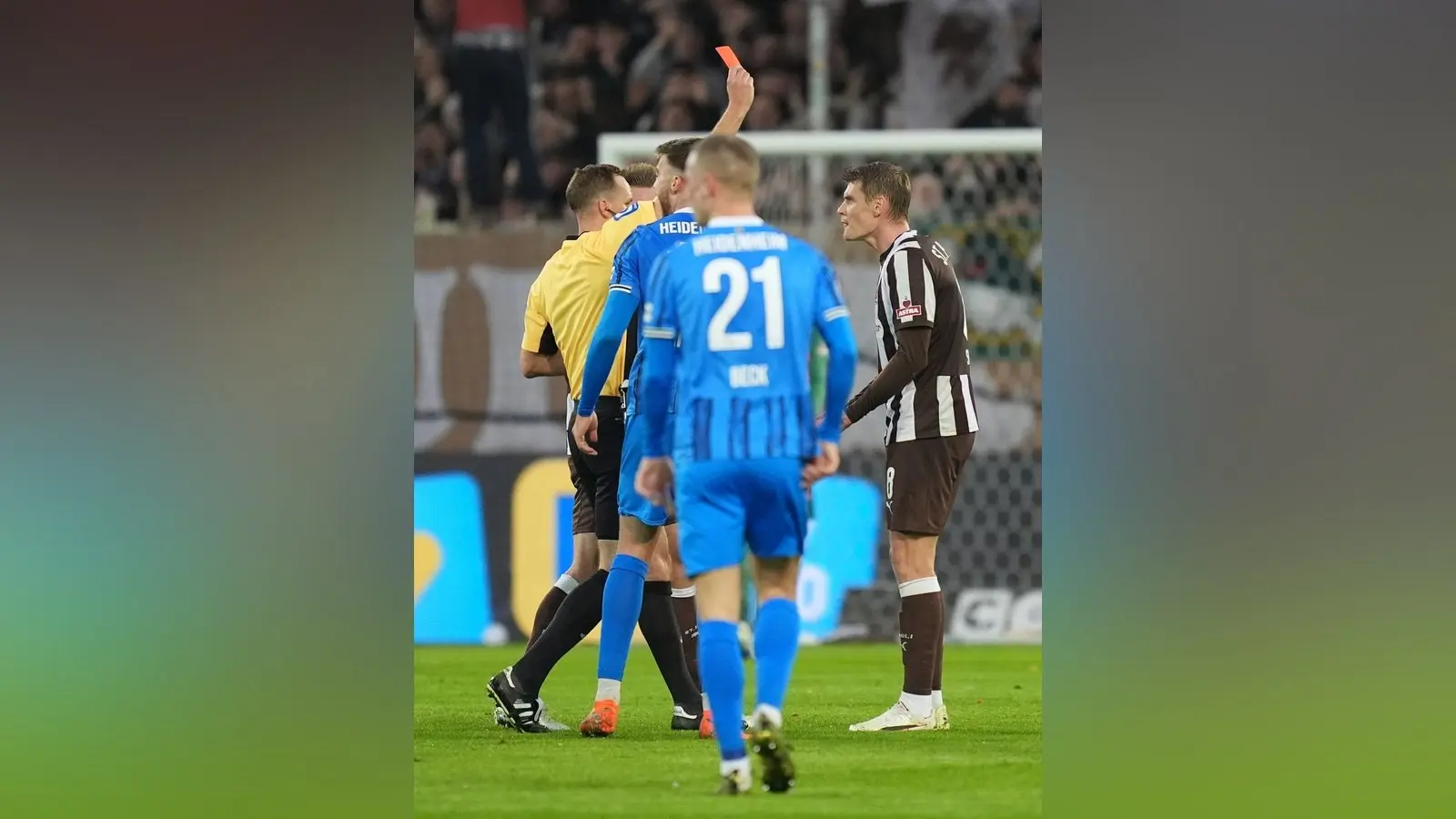 Das Ende von St. Paulis Horrorserie besiegelte Doppelpacker Martijn Kaars (35. Minute/53.), der den Ball zweimal schnörkellos ins Tor schoss. Weil Eric Smith (45.) kurz vor der Pause wegen einer Notbremse die Rote Karte gesehen hatte, mussten die Gastgeber die komplette zweite Hälfte mit einem Spieler weniger bestreiten. Für die Heidenheimer verkürzte Marvin Pieringer (64.).