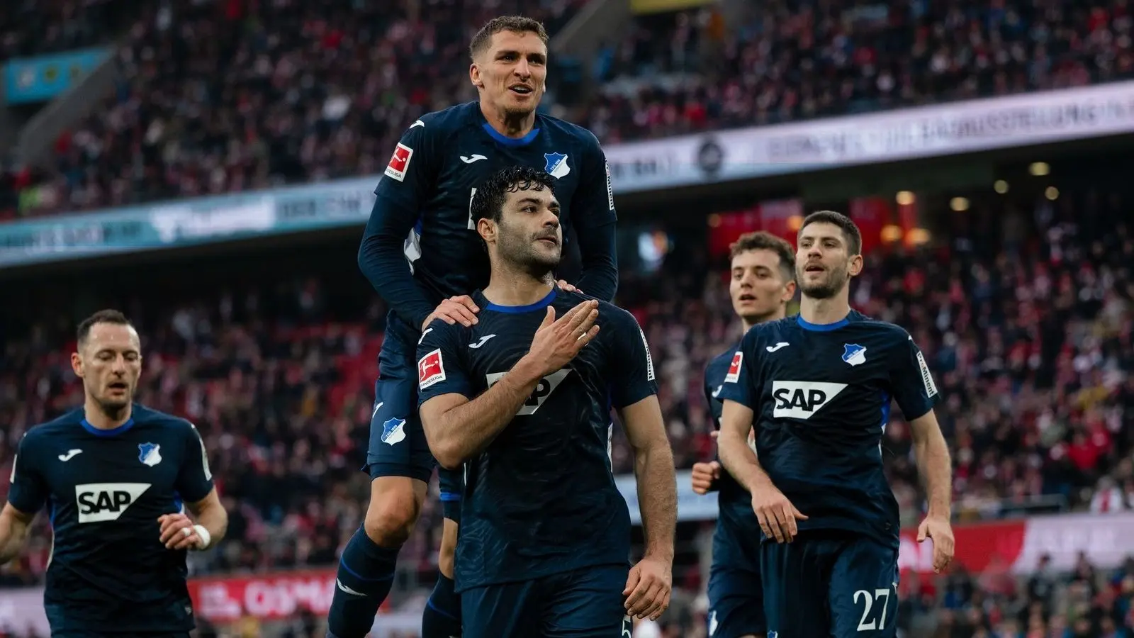 Unter zunächst ein wenig Rauch über dem Spielfeld, nachdem Hoffenheimer Fans Pyrotechnik gezündet hatten, starteten beide Teams verhalten. Auf den Rängen herrschte wegen eines Reanimationsfalles Stille. Doch diese endete nach einer Viertelstunde abrupt: Ache schraubte sich nach einer eigentlich eher aussichtslosen Flanke von El Mala im Zentrum mit dem Rücken zum Tor in die Luft und erzielte per spektakulärem Fallrückzieher das 1:0.