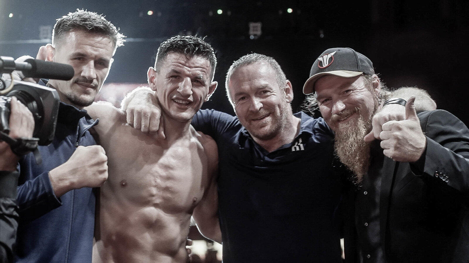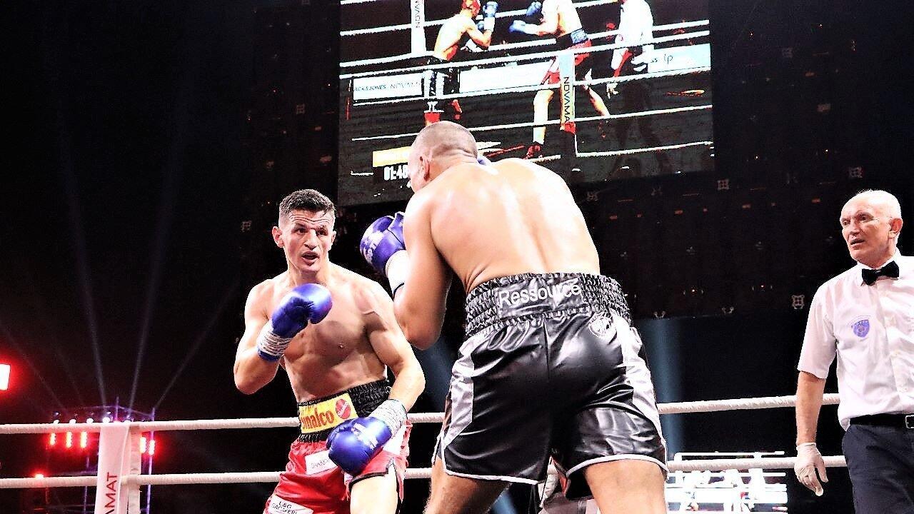 Ein harter Kampf: Am Samstag bestritt der bayerische Profiboxer Robins Krasniqi (links) in Pristina, der Hauptstadt seines Geburtstlandes Kosovo, seinen 60. Profikampf. Er gewann gegen Nadjib Mohammedi, der in der 9. Runde disqualifiziert worden war.