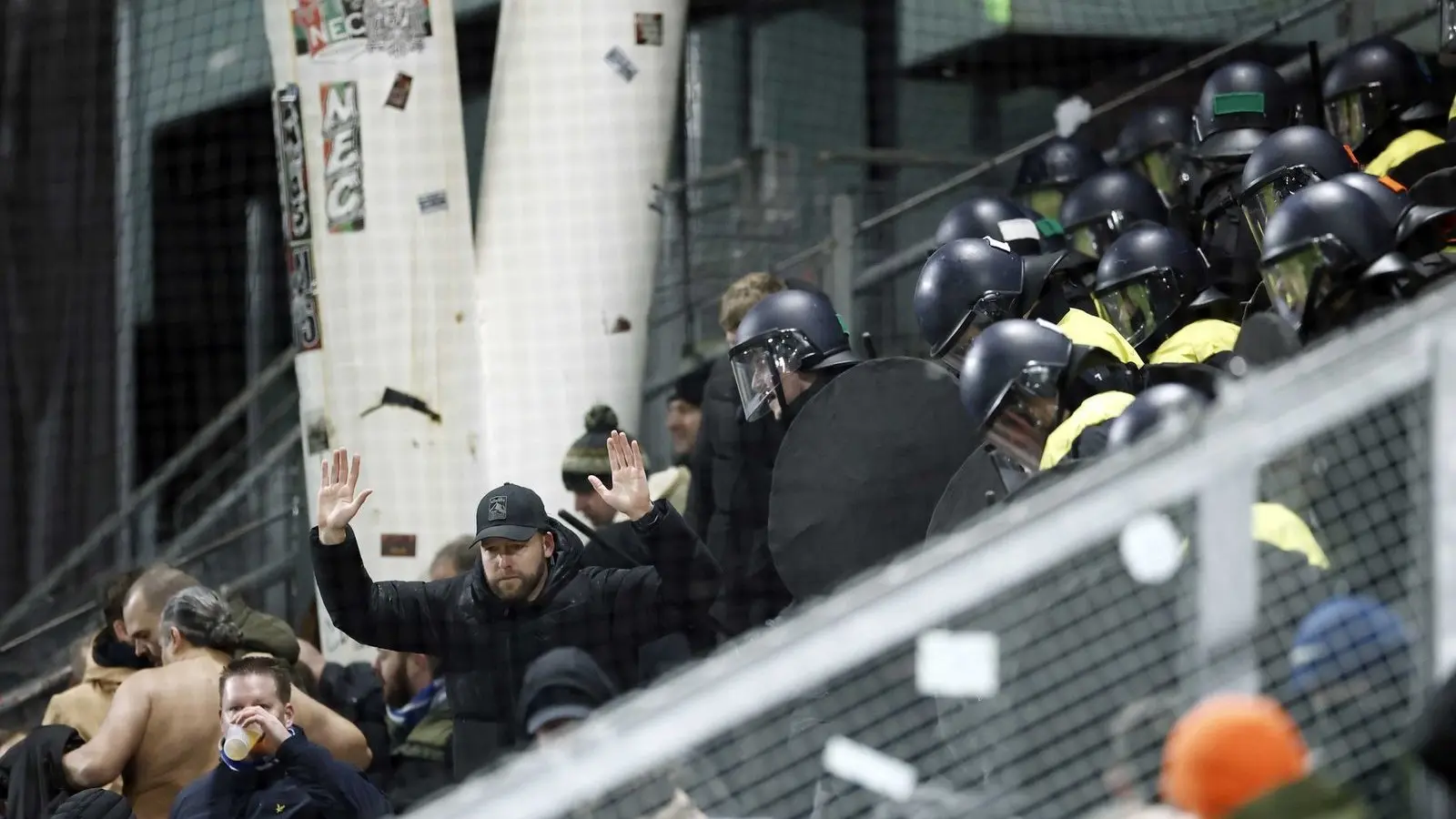 Polizei im Block: Über 300 Fans des KRC Genk mussten nach dem Einsatz das Stadion verlassen.