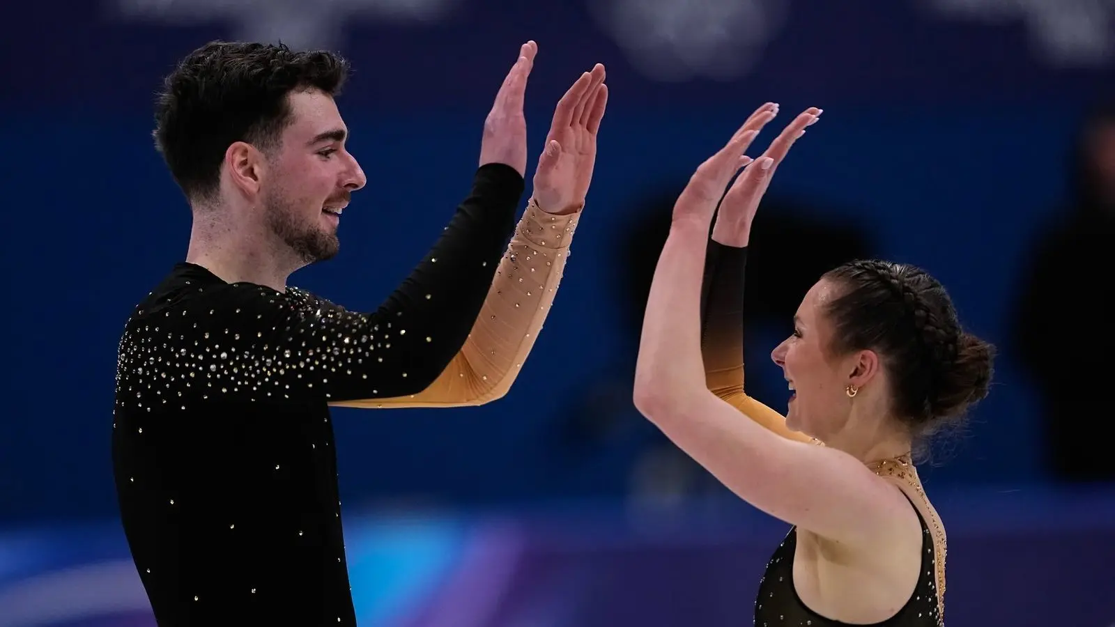 Der Vorsprung auf die zweitplatzierten Anastasia Metelkina/Luka Berulawa aus Georgien beträgt 4,55 Zähler. Dritter sind die Kanadier Lia Pereira und Trennt Michaud (74,60 Punkte). Das zweite deutsche Paar Annika Hocke/Robert Kunkel belegt nach einer guten Vorstellung ohne groben Fehler mit 67,52 Punkten den elften Rang.