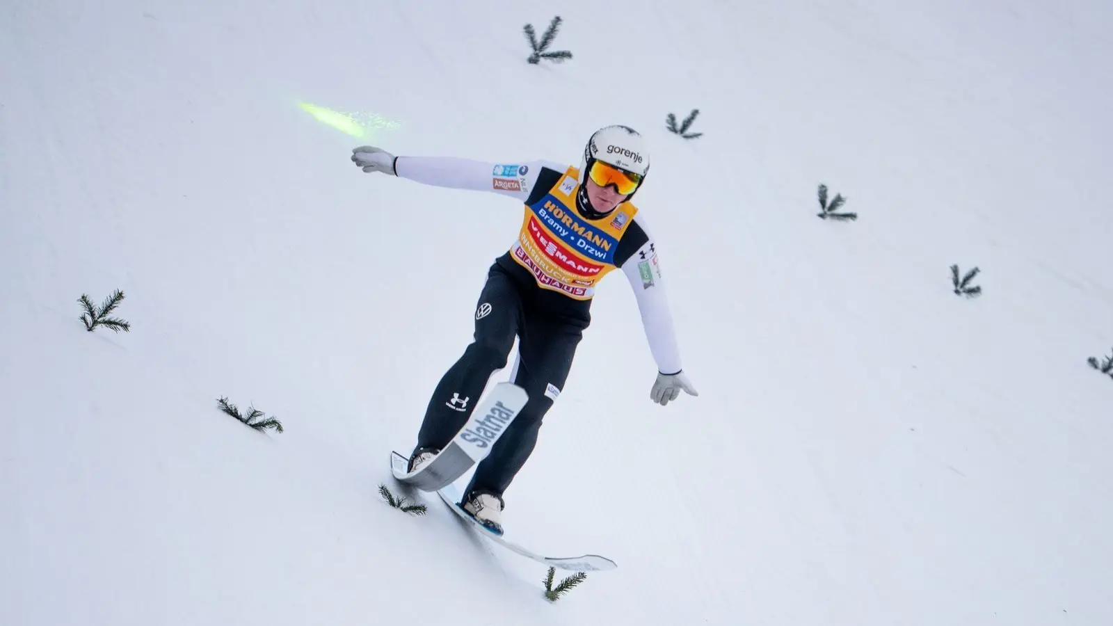 Raimund selbst hatte in der Qualifikation für einen kurzen Schreckmoment gesorgt. Nach seinem Sprung bremste er im Auslauf nicht rechtzeitig ab und krachte mit der Hand in den oberen Teil einer Werbebande. Die Bande ging dadurch kaputt. „Ich war nicht gewohnt, dass ich da unten so schnell bin“, sagte Raimund und stellte klar: „Mir geht's so weit gut.“