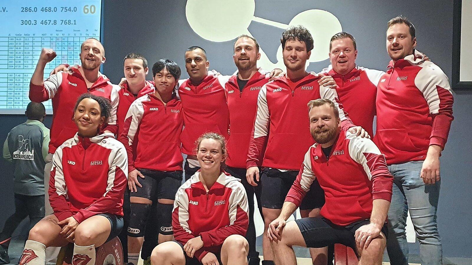 Das TB-Team freut sich über den Sieg beim KSV Durlach. Nun kommt es beim letzten Kampftag am 11. April zum Showdown um den Klassenerhalt gegen die Athletenschmiede Kiel.