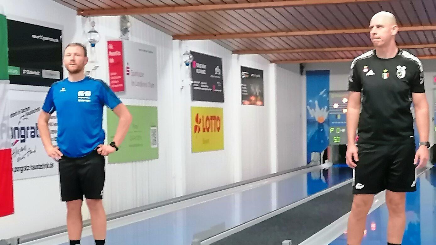 Raindorfs Manuel Lallinger (links) unterlag dem Tagesbesten Tamas Kiss, einem der weltbesten Kegler.