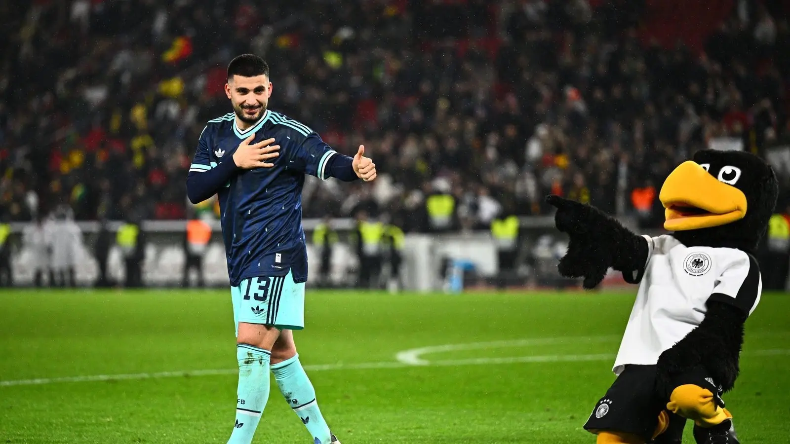 „Ich habe gerade im letzten Jahr, glaube ich, recht wichtige Tore geschossen, gute Spiele gehabt“, sagte Woltemade nach der Ankunft im Stadion in der ARD. „Ich freue mich, dass ich hier spiele“, sagte er zur Rückkehr nach Stuttgart. Und der lange Schlaks hatte schon in der 4. Minute das 1:0 auf dem Fuß. Doch nach Zuspiel von Havertz zielte Woltemade knapp am linken Pfosten vorbei.
