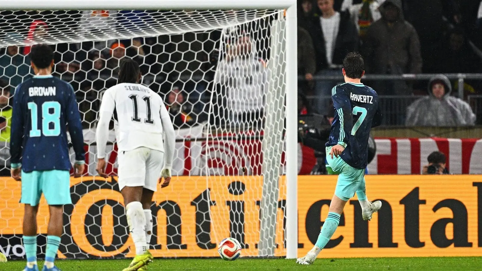 Als Wirtz kurz darauf eine schöne Kombination erfolgreich vollendete, zählte der Treffer nicht, weil Woltemade bei seiner Ablage knapp im Abseits stand. Der Video-Assistent griff auch ein, als Angelo Stiller bei seinem Schuss den abgespreizten Arm des für den VfL Wolfsburg spielenden Verteidigers Jonas Adjetey traf. Nachträglich gab es Elfmeter, Havertz trat an und traf.