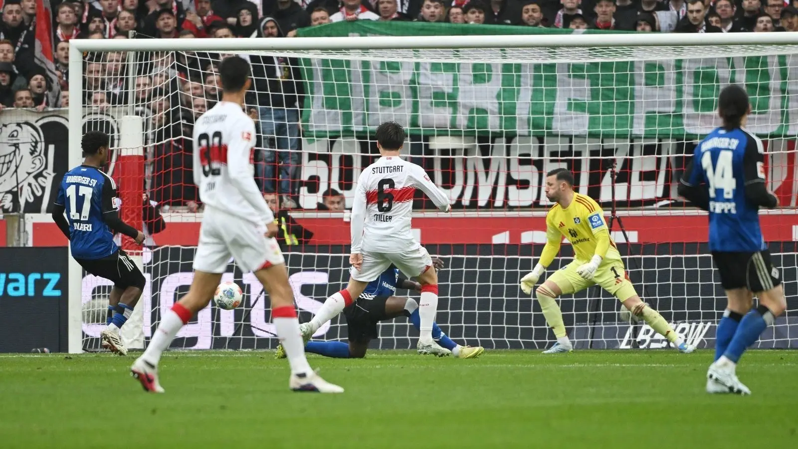 Das 3:0 war hochverdient, den Hamburgern drohte in dieser Phase ein völliges Debakel. Bei einem brandgefährlichen Freistoß verhinderten Heuer Fernandes und die Latte gemeinsam einen möglichen Doppelpack von Mittelstädt (59.). Stuttgarts Verteidiger war unter Bundestrainer Julian Nagelsmann zuletzt nicht mehr gefragt, hofft aber weiter auf eine Nominierung für die WM im Sommer.
