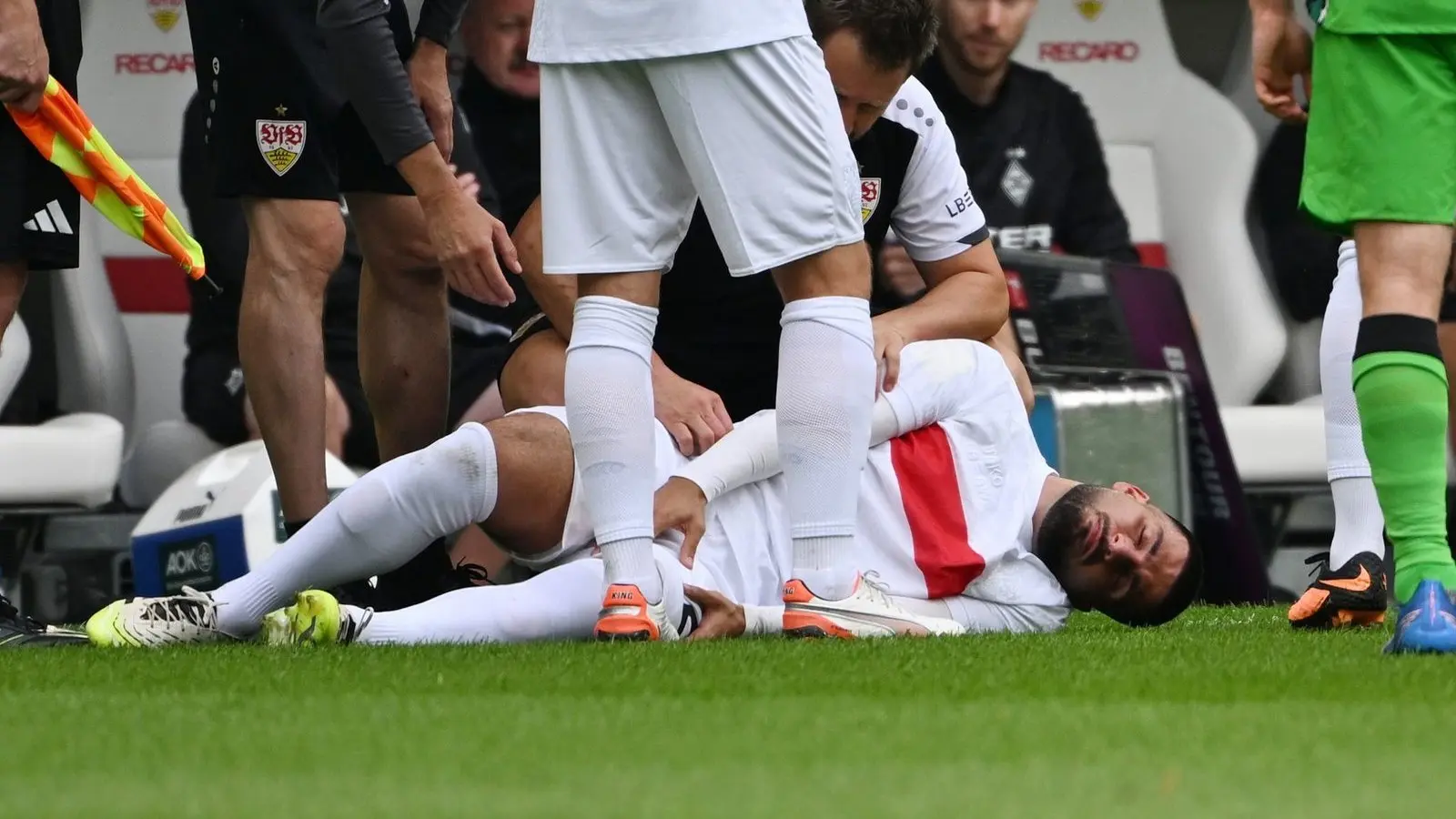 Deniz Undav musste bereits in der Anfangsphase verletzt ausgewechselt werden. Auf der Bank saß der Angreifer fortan mit einem dick bandagierten linken Knie.