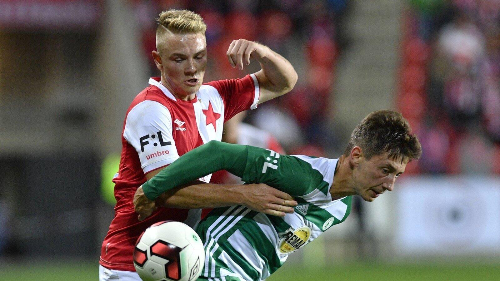 Till Schumacher (rechts, hier im Spiel bei Slavia Prag) hat neue Konkurrenz auf der Linksverteidiger-Position bekommen. Jetzt muss er sich durchbeißen. (Foto: imago)