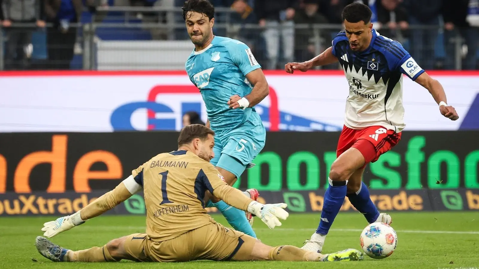 Vor 57.000 Zuschauern im wieder einmal ausverkauften Volksparkstadion waren die Hamburger von Beginn bemüht, das bittere Nordderby (1:3) beim SV Werder Bremen in der Vorwoche vergessen zu machen. In der ersten Viertelstunde hielten sie auch spielerisch mit dem Favoriten aus dem Kraichgau mit. Besonders Ransford Königsdörffer hatte einige vielversprechende Momente, klare Torchancen erspielte sich der HSV aber nicht.
